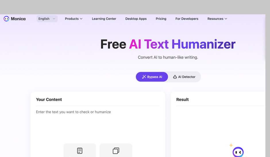 | Monica AI Humanizer | 84–91% | Low | STEM rewriting, structured problem-solution paragraphs |