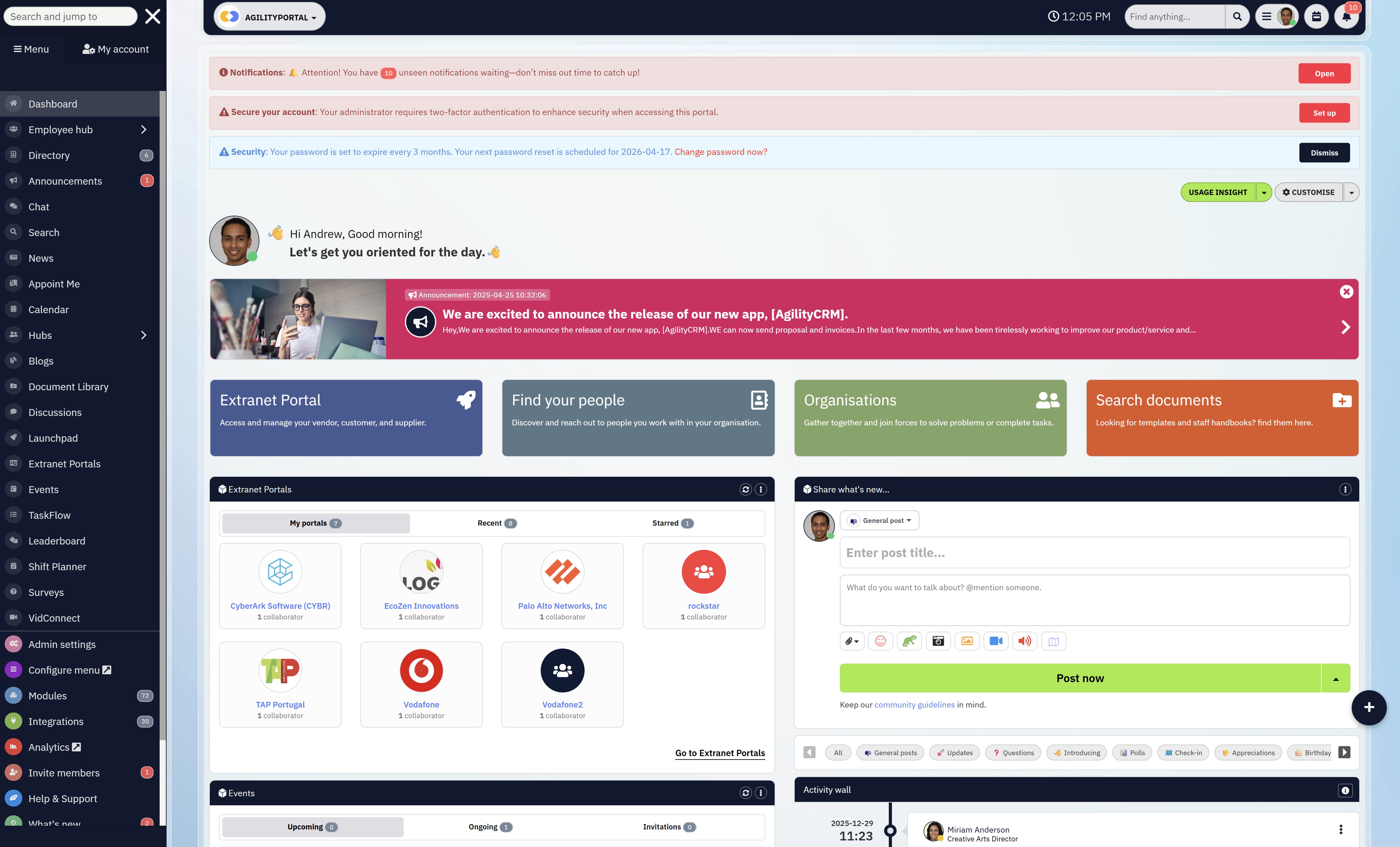 - Admin controls & governance - AgilityPortal is built with admins in mind: permissions, roles, and governance are first-class features.