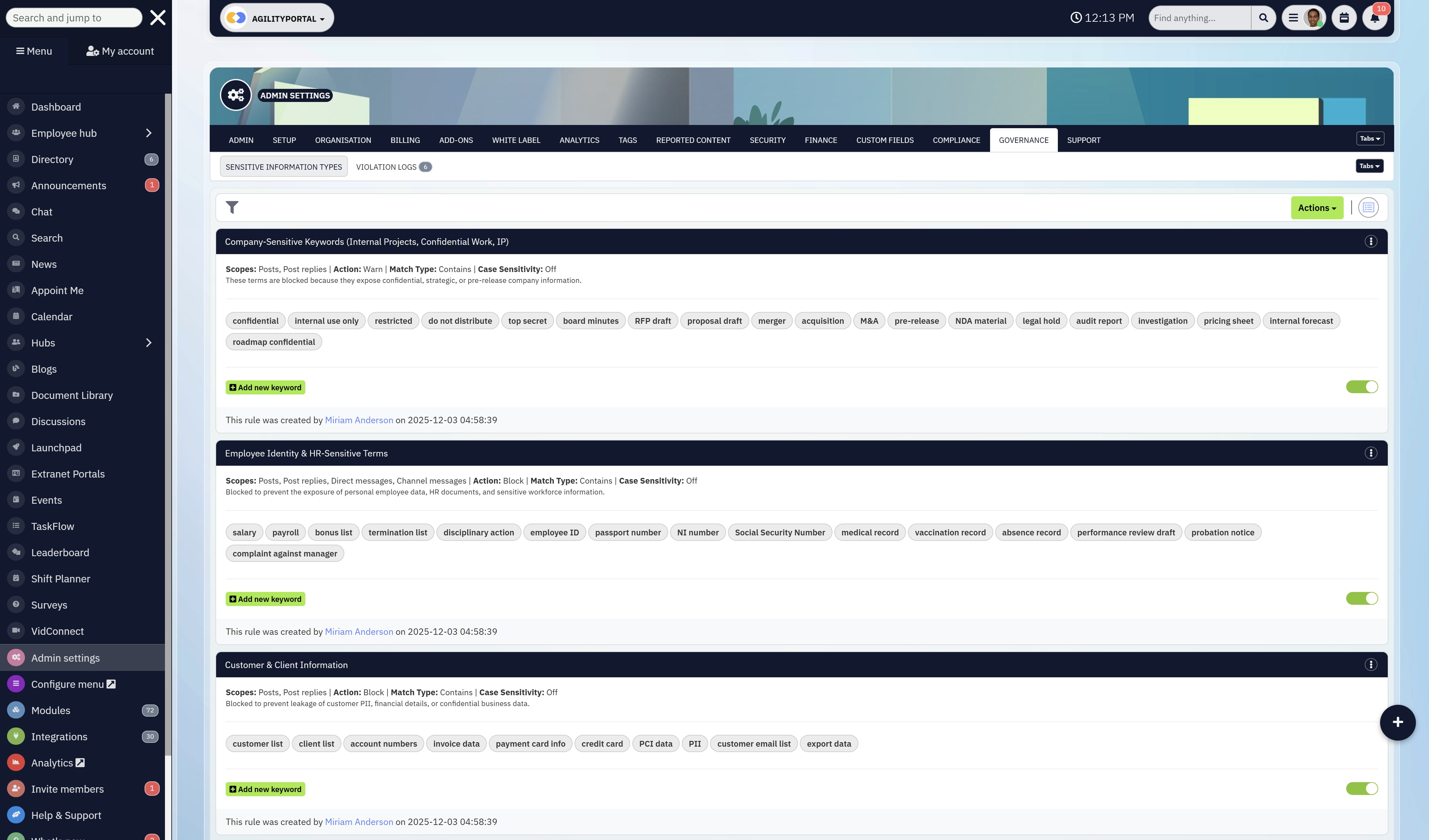 AgilityPortal Governance, Security & Compliance