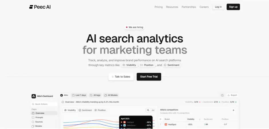 AI prompt monitoring andTracks visibility in AI Overviews, ChatGPT, Perplexity, and similar platforms while linking mentions to source content.