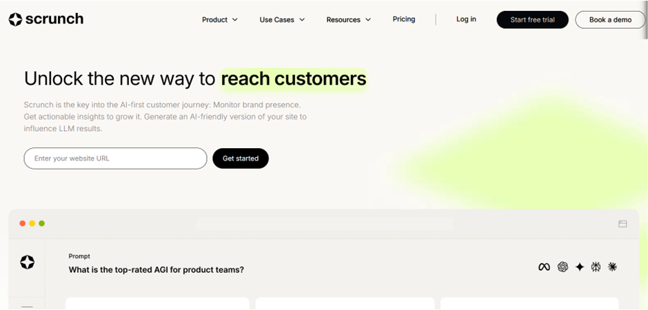 Scrunch helps teams understand where and how brands appear in AI answers and what AI crawlers and systems reference when generating responses. It also supports monitoring AI crawler traffic and identifying content gaps or technical issues that limit visibility.