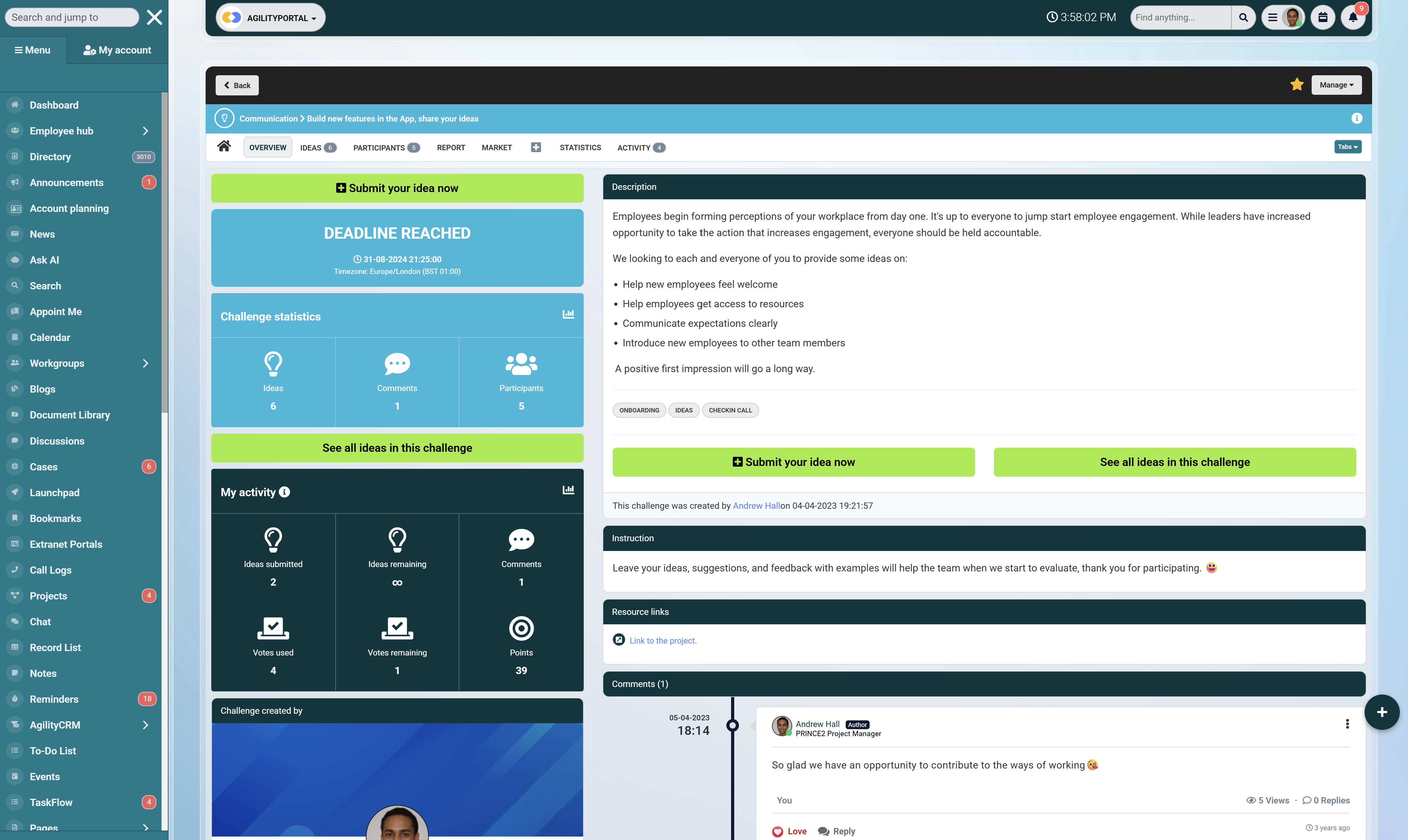 - Bonus: AgilityPortal's collaboration tools make it easy to run innovation campaigns virtually across global teams.