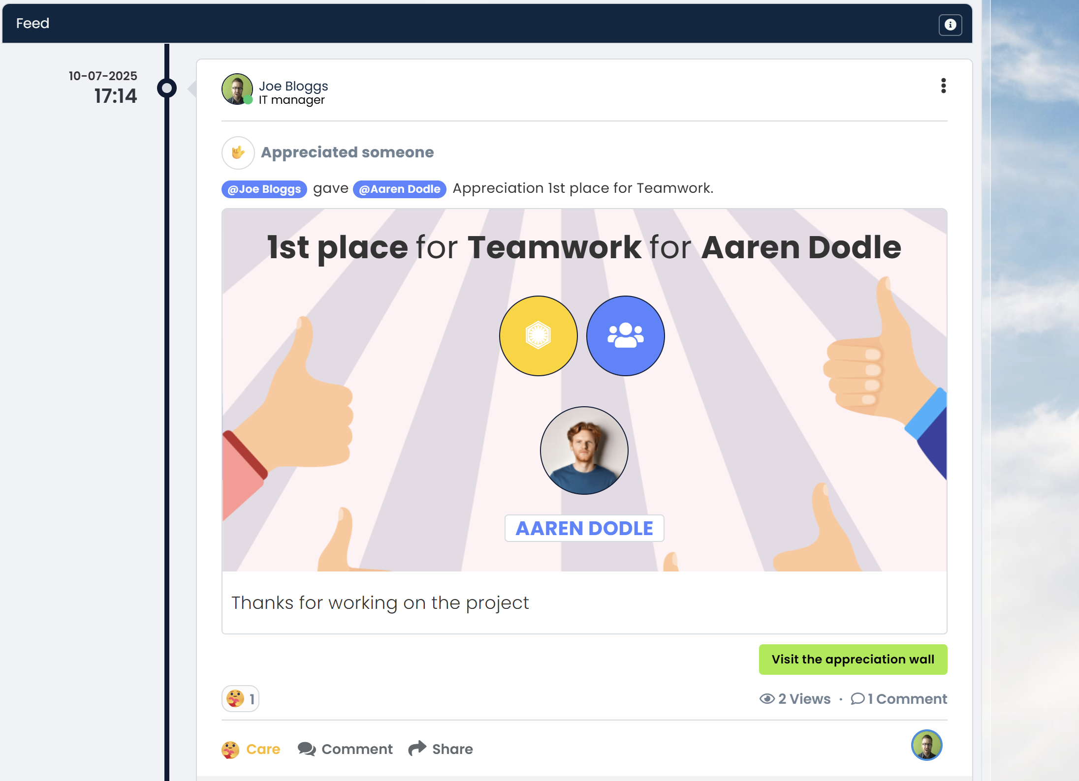 By combining your Employee Engagement Forum with recognition features, you empower teams to celebrate each other's efforts, strengthen cross-departmental connections, and keep motivation high.