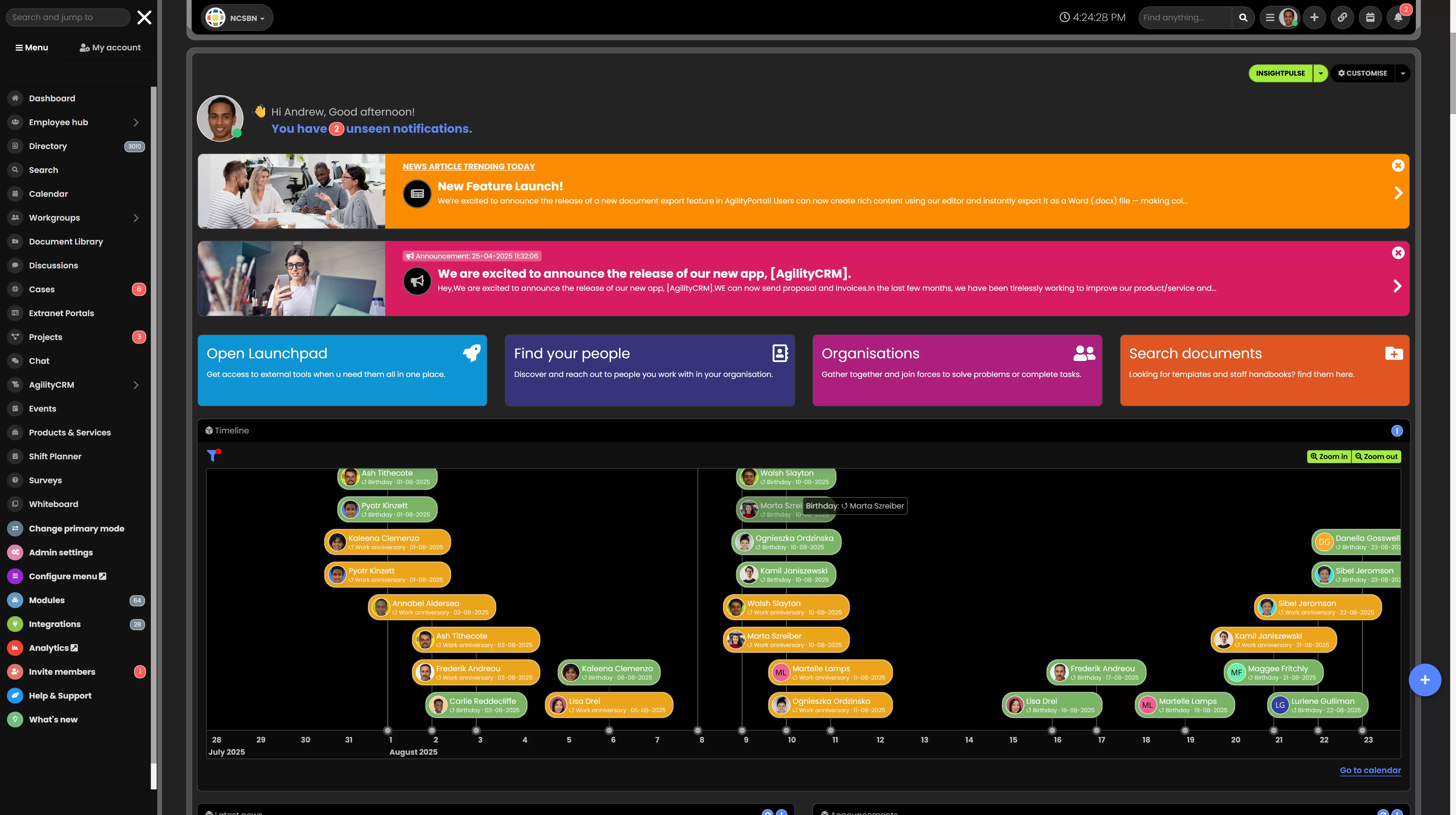 For companies exploring innal communication platforms for companies or looking for free software for internal communication in the office, AgilityPortal offers an intuitive experience that rivals the top employee communication apps (free or paid). From onboarding to everyday collaboration, the platform covers all the key use cases you'd expect from the best employee communication platform.