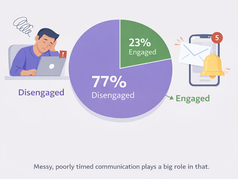 Gallup reports that only 23% of employees worldwide are engaged at work, and messy, poorly timed communication plays a big role in that. People don't tune out because they don't care.