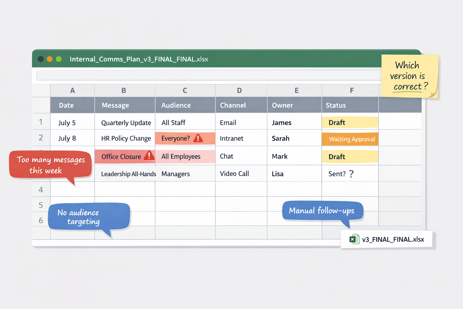 Templates don't manage timing. PDFs don't adapt. That's why many internal communication planning examples look good on paper but fail in practice.