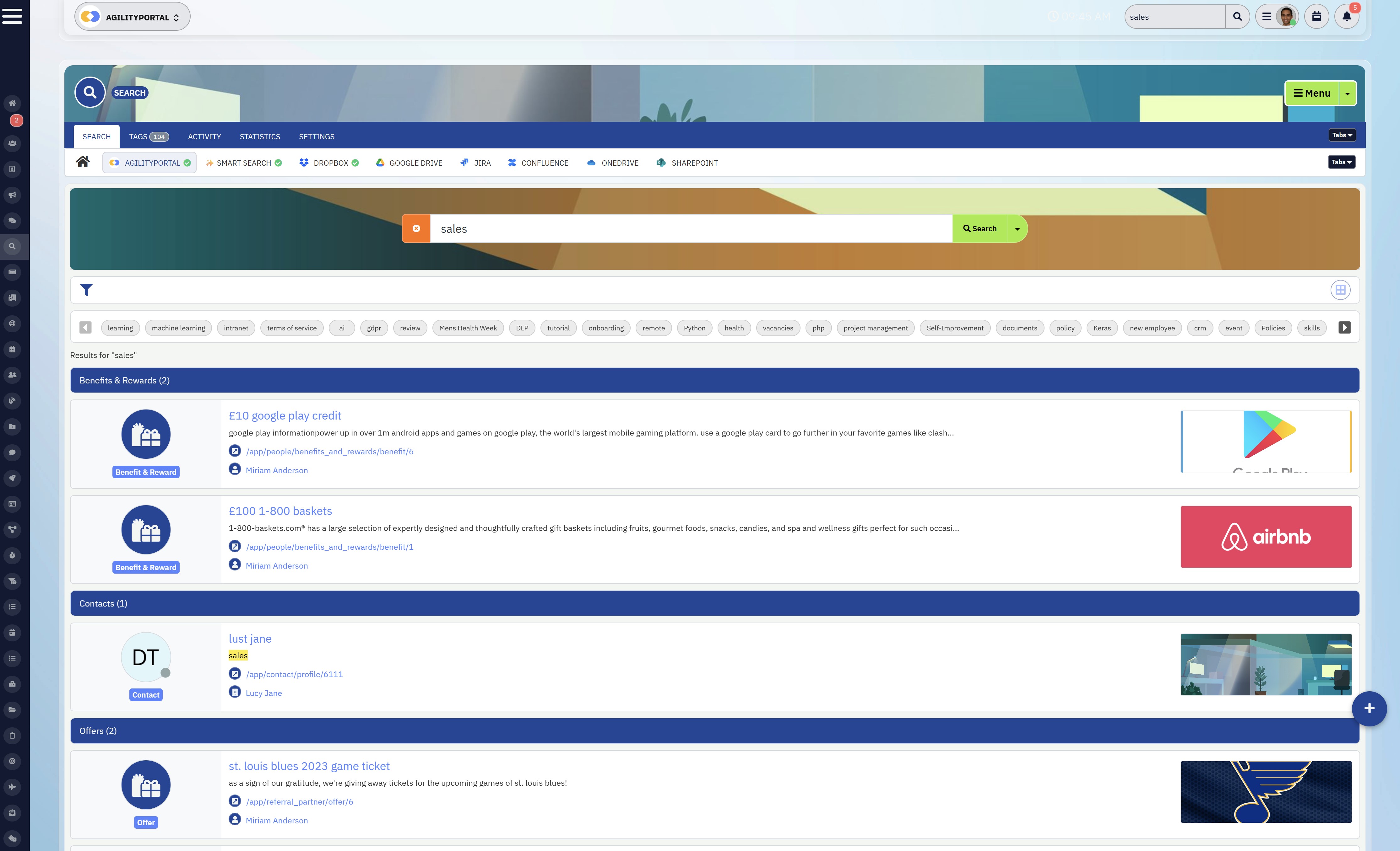 - powerful search that helps employees find information quickly
