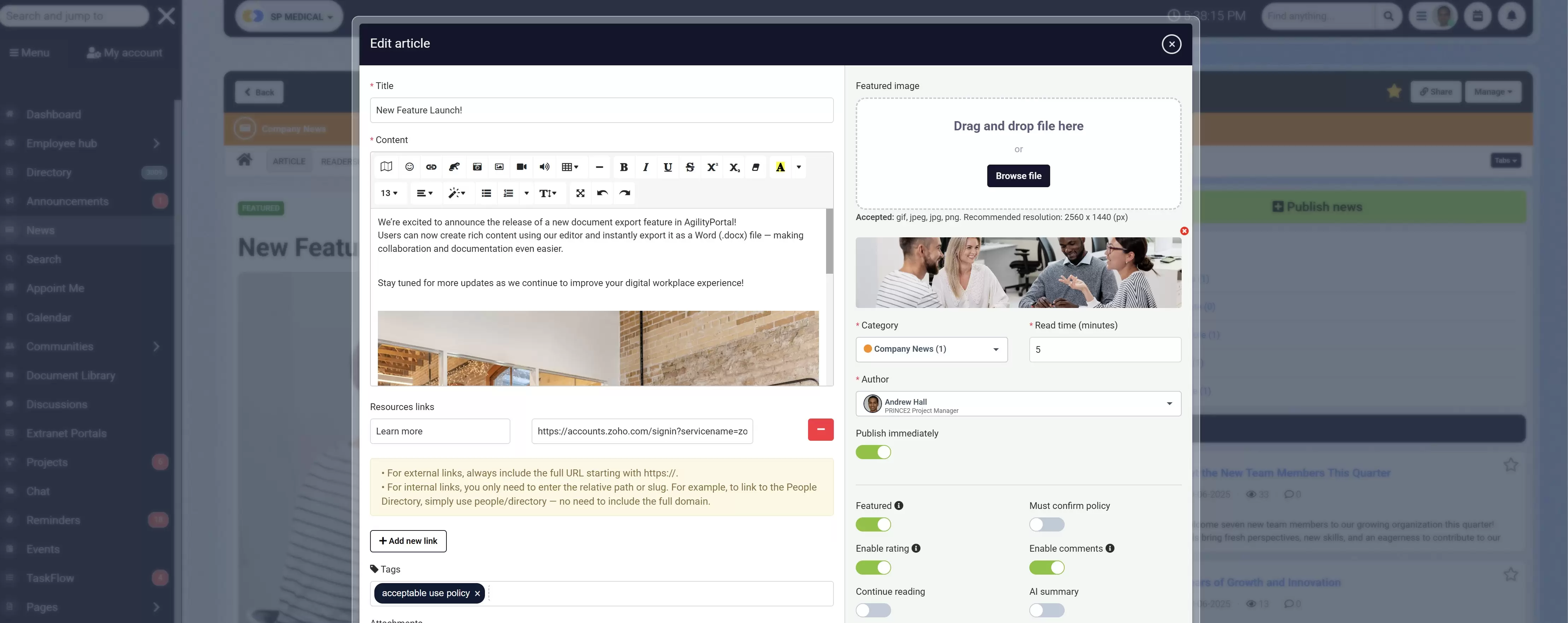 👉 Start your next company newsletter in the AgilityPortal News Module today — and transform the way your teams communicate.