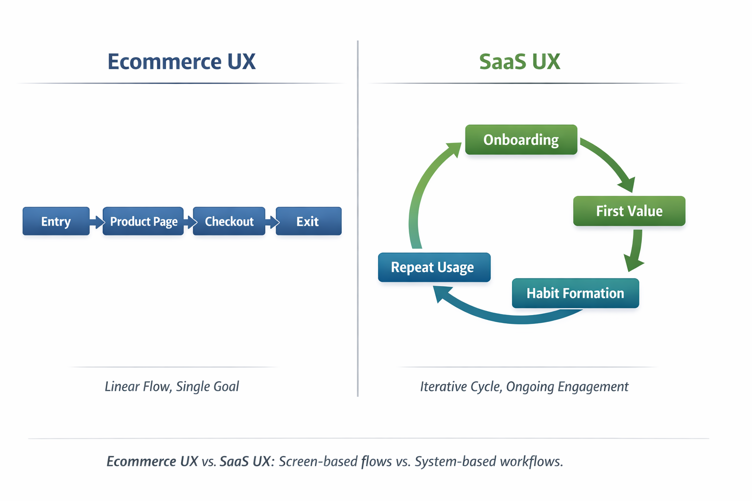 This is where ecommerce UX and SaaS UX quietly split — and most teams never notice until adoption tanks.