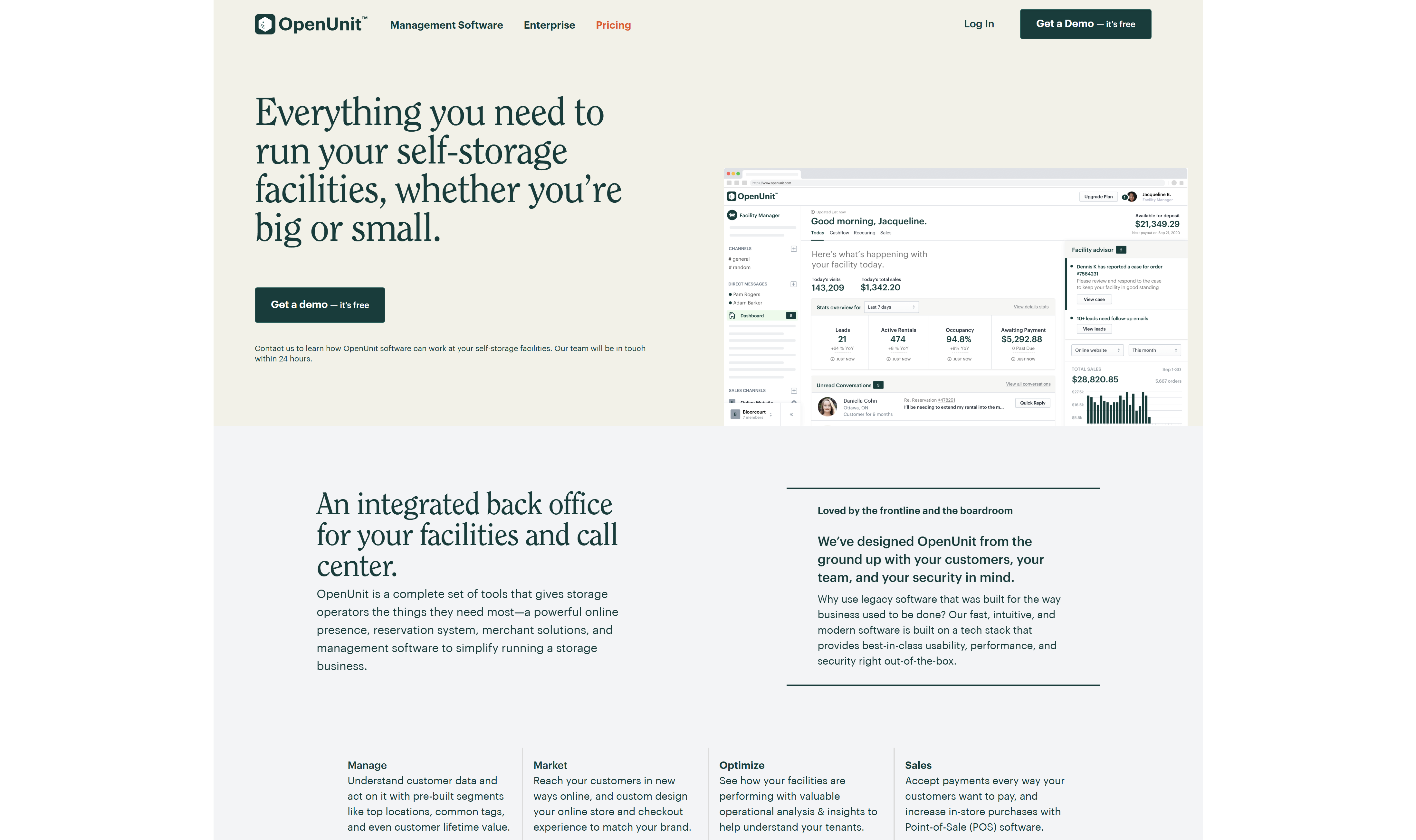 It brings together essential features such as tenant management, online reservations, billing, access control, and inventory tracking into one user-friendly platform.