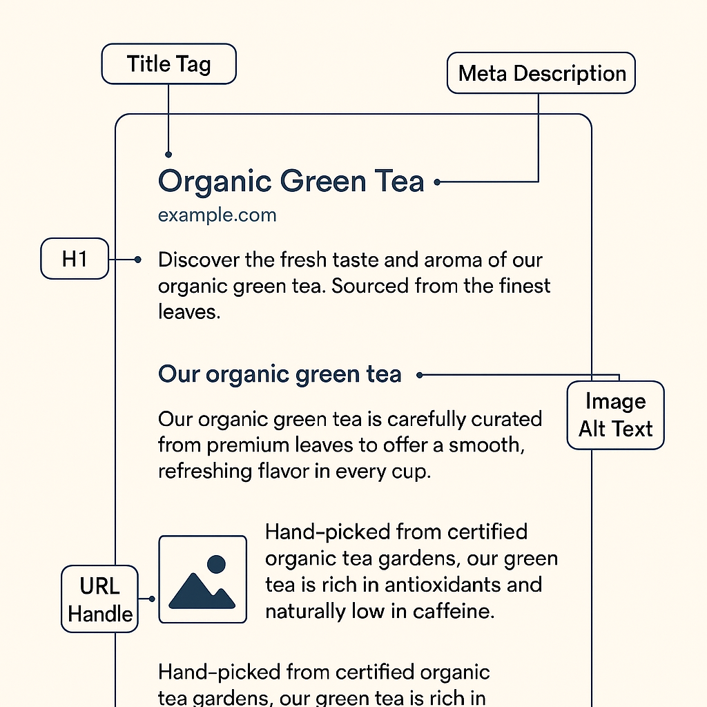 Adding clear, descriptive copy—like SEO-friendly meta titles for Shopify products or keyword-rich alt text for eCommerce images—helps search engines match your pages to relevant searches.