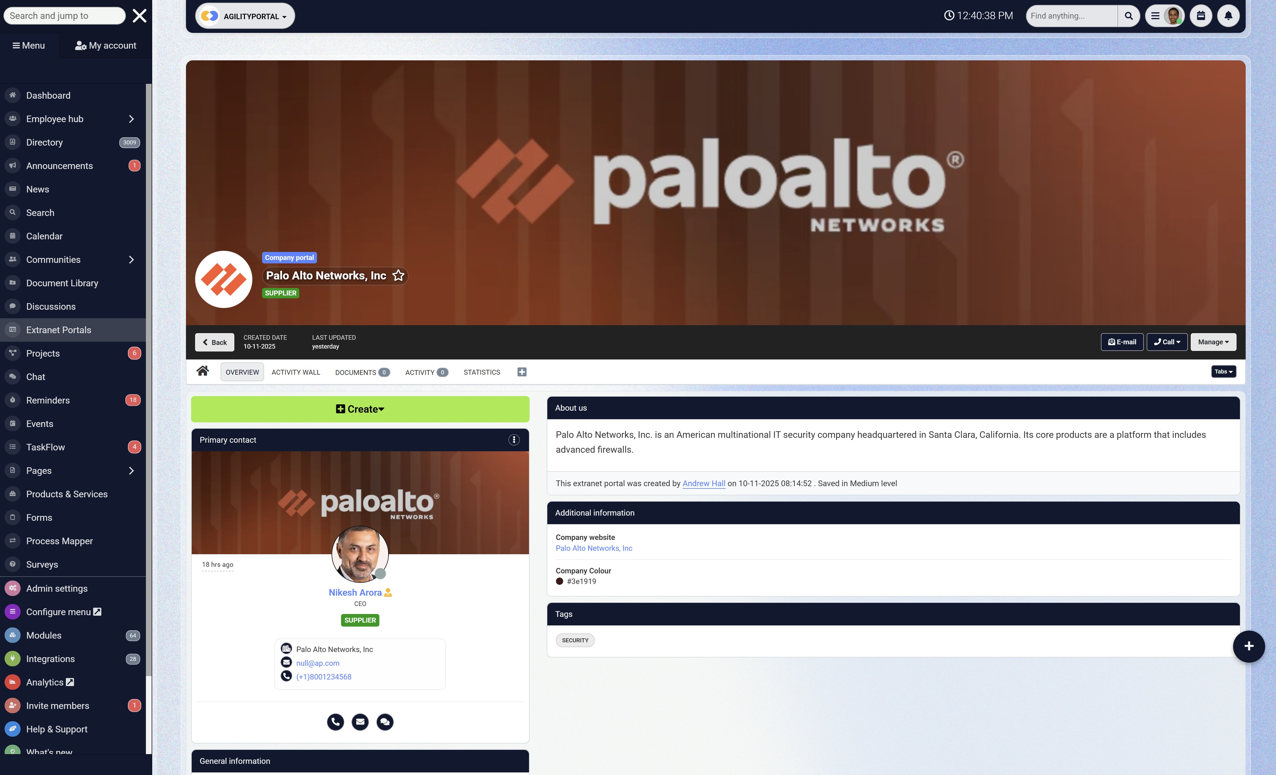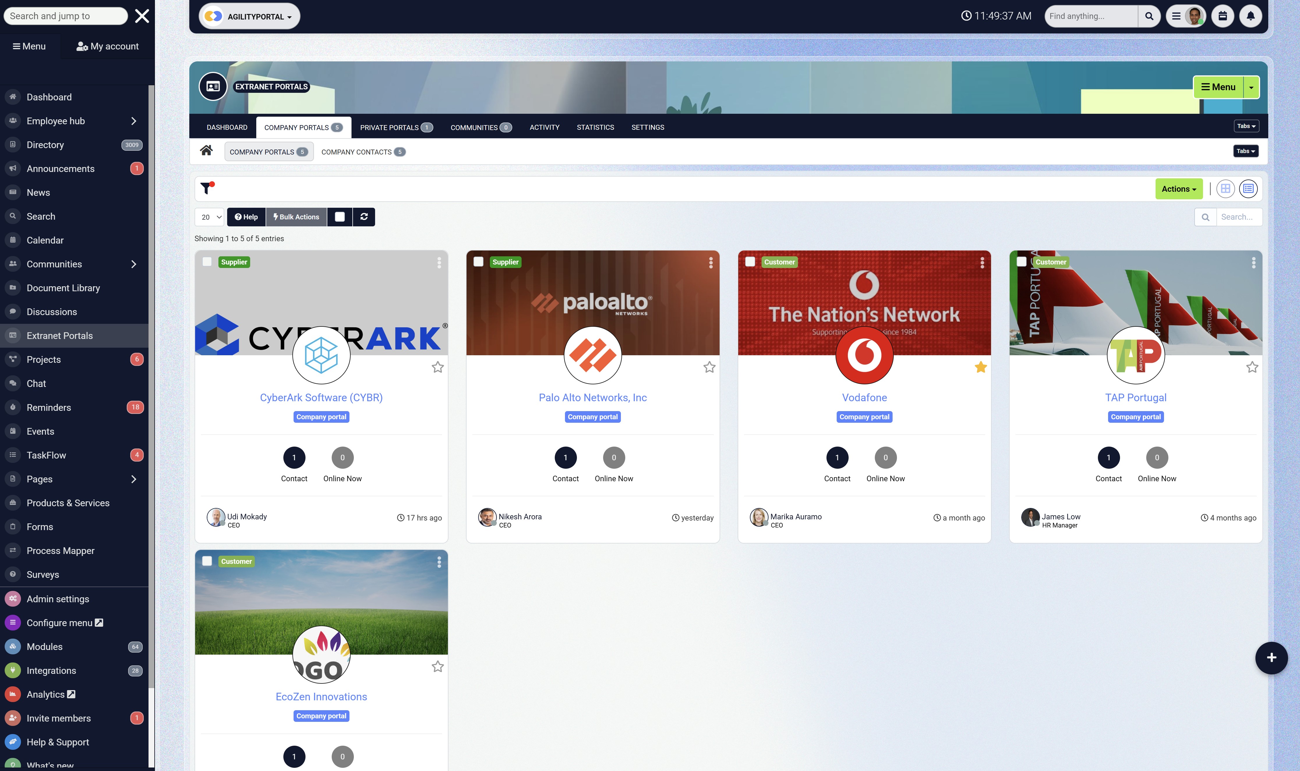 A good example is AgilityPortal's Extranet which offers the same streamlined experience — enabling suppliers to manage information, update contacts, and collaborate with employees in one secure, unified platform.