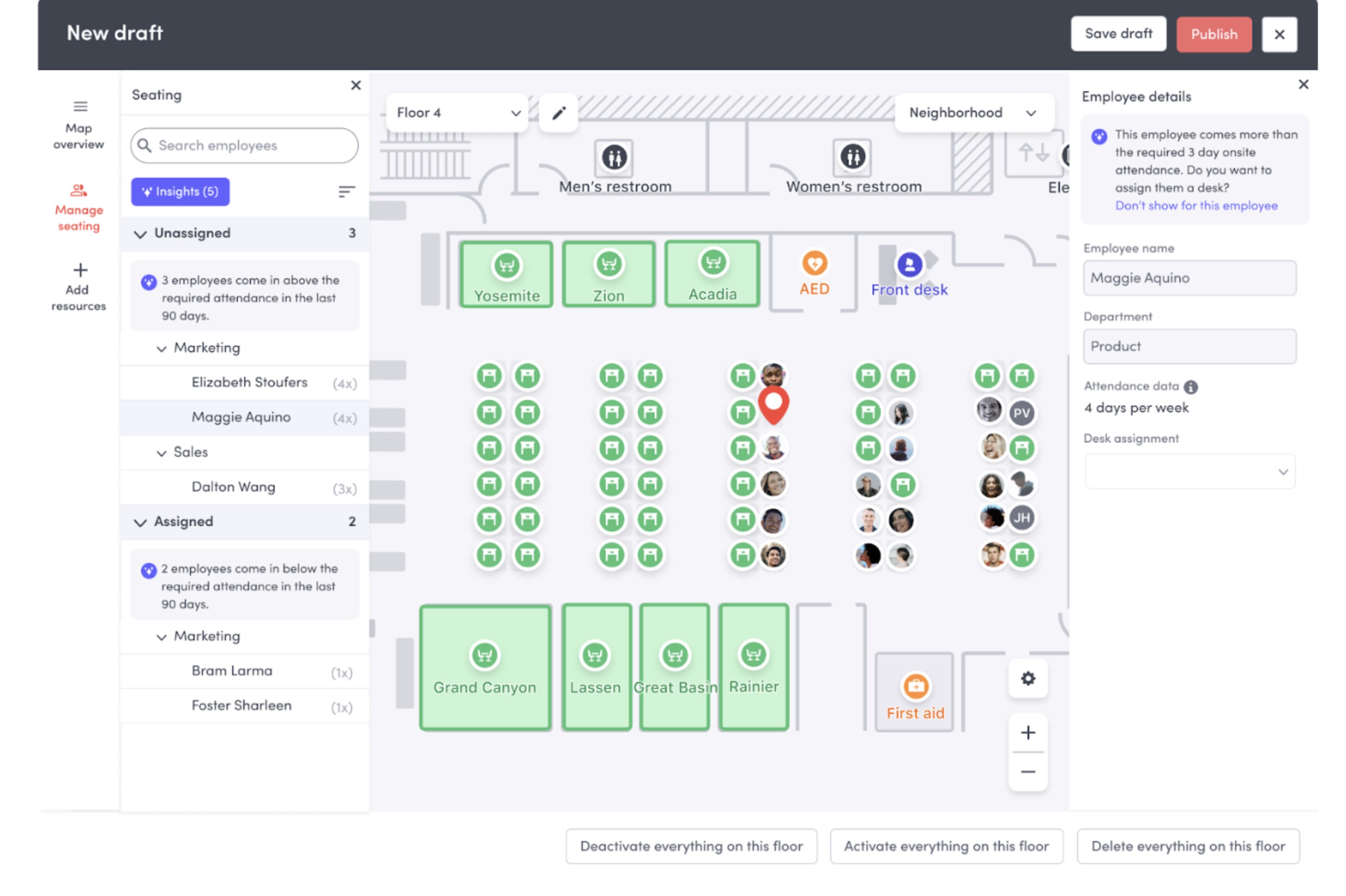 They show real-time availability, so employees know exactly what's free before they leave home. Managers also get full visibility into who's coming in and when, which helps with planning and collaboration.
